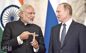 獲俄在印設廠產核反應堆零件俄羅斯和印度在冷戰時期是親密盟友,但雙邊關係近期出現暗湧,新德里不滿俄方向巴基斯坦售武,莫斯科則不滿印方採購法國和美國武器,莫迪此行有助消減雙方分歧。(香港明報)
