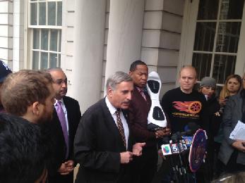 按照現行州法例,這類電動滑板是不允許上街的。但來自紐約市選區的州眾議員魏普林(David Weprin)、參議員派拉達(Jose Peralta)計劃提案(圖),建議將電動滑板合法化,並質疑現行法令矛盾和疆化。