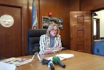 (紐約.羊展恬15日報導)皇后區區長凱茲(Melinda Katz,圖)昨日在區公所大樓舉行媒體見面會,就任期內社區發展及未來施政方向與各族裔媒體進行交流互動。