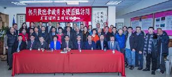 (紐約.羊展恬21日報導)在中國農曆新年即將到來之際,美國紐約溫州同鄉會昨日喜迎貴客,中國駐紐約總領事章啟月(前排左四)率領副總領事鍾瑞明(前排右四)及4位領事一起前往法拉盛友聯街美國紐約溫州同鄉會會所拜訪溫州僑胞,受到會長黃根弟(前排左五)、中美商會創會會長傅林敏芝、會長傅長光等60多位溫州鄉親僑團領袖及企業代表的熱烈歡迎。