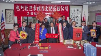 這是章大使自一年前上任駐紐約總領事後,首次拜會美國紐約溫州同鄉會。章啟月大使表示,由於上任後公務繁忙,直到最近才有機會到訪,她並感謝紐約溫州僑團在去年中國領導人習近平主席訪美期間,社團僑界?予熱烈支持。同時,章啟月也攜帶中國傳統慶祝農曆春節的春聯及春帖等吉祥對聯,致贈給美國紐約溫州同鄉會,向僑胞們拜年,帶來新年的祝福,共同慶祝猴年的到來。(圖:美國紐約溫州同鄉會提供)