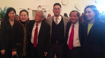 包括法拉盛華商會總幹事杜彼得(右二)等華韓裔社區領袖昨日紛紛受邀出席區長凱茲區情報告大會。(圖:杜彼得提供)