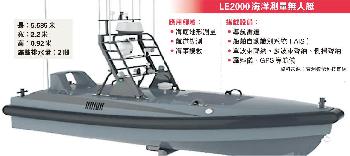 據雲洲智能網站公佈,用於海洋測量的無人艇“LE2000”排水量約2噸,長約5.6米(見表),柴油動力,可持續航行300公里,速度為每小時28海里,依靠LTE網絡或是無線電傳輸與控制台通訊,可在海浪1.5至2.5米的海况下作業,最惡劣可抵禦4米高的海浪。