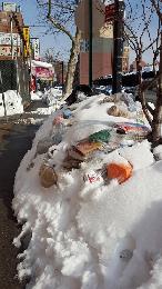 (紐約.羊展恬28日報導)暴風雪之後,雖然紐約市清潔局奮力鏟雪,但垃圾回收服務卻因此受延誤,皇后區法拉盛街頭,近來多處雪堆被垃圾塞滿,使得垃圾堆積成山、污水橫流。