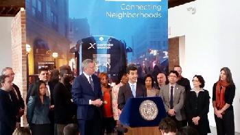 (紐約.留天佑17日報導)市長白思豪早前倡議建造首條輕軌鐵路,有關構想獲多位布碌崙區民意代表支持。他們昨日在聯合記者會上(圖)表示,據估計,有關建設將於2045年前,創造約2萬8000個就業機會,工資和經濟活動總額,將達近250億元。
