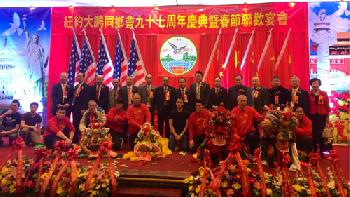 (紐約29日訊)紐約大鵬同鄉會在華埠舉行了97週年慶典暨春節聯歡宴會(圖),逾千本地大鵬籍及客屬僑胞參與,同賀新春的到來。現場按客家人傳統,舞麒麟助慶,又有功夫演示,熱鬧非凡。