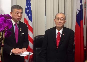 蕭貴源發言時感謝鄭永佳來訪,他說,中華公所作為僑社之首,目標在於維護僑胞利益,在美國工作生活,成為國家的一份子。