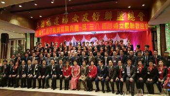 美國福建婦女友好聯盟總會8日舉行第六屆12週年職員就職典禮暨「三八」國際婦女節慶祝會,包括會長楊蓮英等眾多理事會員出席共慶佳節。(圖:羊展恬攝)