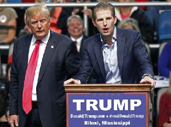 (明報19日訊)當局週五稱,共和黨總統參選人川普(圖左)的兒子埃里克(圖右)收到一份含有白粉的恐嚇信,紐約市警與聯邦調查局(FBI)正在對此案展開調查。