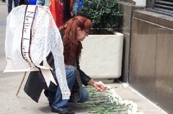 (紐約.留天佑報導)今年是紐約「三角衣廠」(Triangle Shirtwaist Factory)大火悲劇105週年,一批車衣工人、勞工界代表及民選官員昨在華盛頓廣場旁的原衣廠大樓外舉行紀念會,為當年的146位、以新移民為主的遇難者鳴鐘獻花,祈求悲劇不再重演。