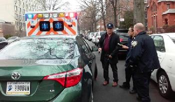 這起車禍事故發生在昨日中午12點半左右,據現場目擊者表示,這名華裔老翁在邦恩街與羅斯福大道交口過馬路時,行人道上綠燈時間還有8秒鐘時候,只見一輛綠色轎車突然搶道左轉將老人撞倒,事故發生時只聽到「砰」的一聲,華裔耆老被車彈起後應聲倒地不起。路人見狀立刻撥打911報警,市警109分局警車及救護車不久就抵達事故現場,並施行緊急處理將老翁頸部圍上護套,送到救護車上。一旁陪同老翁的老婦顯得十分驚慌,並一起陪同老翁前往醫院。