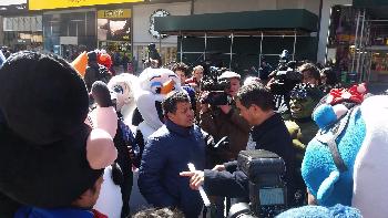 市議會交通委員會主席羅格貴茲(Ydanis Rodriguez)及多位委員,昨日走訪時報廣場街區時表示,時報廣場是紐約市地標,每年有數以百萬計,來自世界各地的遊客到訪。市議會不反對任何人,以合法方式在該處經營觀光業務,但與其他商戶一樣,應接受政府相關規管,且不能影響行人專用區的秩序。