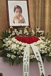 (明報14日訊)布碌崙日落公園疑似遭母親李林頭浸入水中溺水身亡的兩歲女童鄭琳芯(圖),昨日在法拉盛全福殯儀館舉行告別式,由她的父親鄭祖勝及由中國專程到美送最後一程的爺爺奶奶悲痛地為孩子辦喪事,昨日告別式上親友無人出席,靈堂前顯得十分冷清,只有曾經親手帶大女童的鄭奶奶一直不停地哭泣,令人看了鼻酸。
