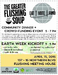 (紐約.羊展恬14日報導)為協助紐約社團籌措經費,來幫助法拉盛社區,大法拉盛西商會(The Greater Flushing Chamber of Commerce)將在4月15日下午5點在法拉盛北方大道137之16號的貴格會所(Flushing Quaker Meeting House)舉辦一場名為「SOUP」(圖)籌款餐會,民眾只需花5元就能幫助社團服務法拉盛社區。
