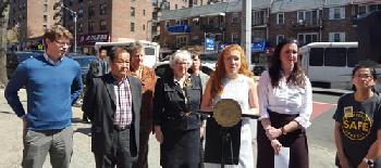 (紐約.羊展恬19日報導)昨日包括州眾議員李羅莎(Lily Rozic),州參議員史塔文斯基及市議員顧雅明的代表,社區居民代表等,齊聚在該處召開記者會,強烈要求市交通局法拉盛緬街及波森大道(Blossom Ave)交口設立交通號誌,消去交通黑點,維護社區居民的安全。