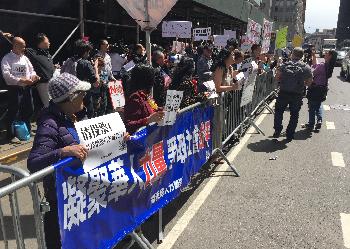 (紐約.留天佑20日報導)法官昨午作出宣判前,近200名華裔已到法庭外舉牌示威。後來主張對梁作出入獄判決的維權團體成員愈來愈多,雙方隔空叫囂,警方將兩批示威人士隔離。