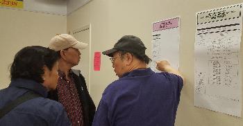 包括華埠在內紐約州65選區眾議員特別選舉與總統初選綁在一起,讓許多華裔選民感到困惑,僑領于金山(右一)特別為選民講解。(圖:羊展恬攝)