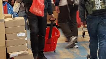 華人超市週末假期購物人潮不斷,每位顧客都是大包小包提著超市的塑料袋,新法一旦實施收費對消費者影響不小。(圖:羊展恬攝)