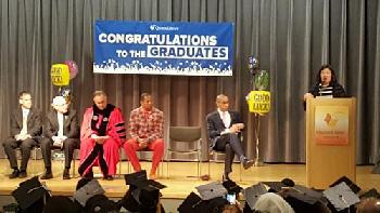 這場結業典禮由皇后區公共圖書館新任館長瓦科(Dennis Walcott)主持,他在會中也特別讚揚這些最終能完成高中學歷課程的學生,並鼓勵他們要繼續追逐夢想,向更高學府邁進。包括國會眾議員孟昭文及紐約市大皇后學院校長Matos Rodrigues、市議員Andy King都親自出席典禮向學生們道賀。