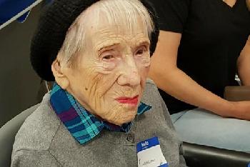 (紐約.羊展恬13日報導)俗話說:「家有一老,如有一寶」。家中若出現一位百歲人瑞,就已經很不簡單,但是位於法拉盛自助社區服務公司(Selfhelp)老人公寓中目前卻住有7位百歲人瑞,其中6位外裔百歲人瑞昨日都出席Selfhelp華人顧問委員會舉行的百歲慶生會,包括一位109歲高齡的女人瑞Adele Levner(圖),市議員顧雅明及陳倩雯等眾多華人社區領袖都親自出席道賀並頒發賀狀。