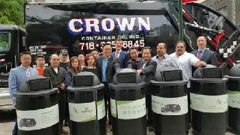(紐約.羊展恬14日報導)法拉盛王子街與37大道交口處的三角島,昨日在州眾議員金兌錫及大法拉盛西商會等組織下,聚集來自法拉盛多個社區商家代表及商會成員舉行記者會,宣佈由法拉盛專門收取商家街道圾圾的皇冠清潔公司(Crown Container Co.,Inc)負責三角島的垃圾搬運及清潔工作,同時也宣佈該公司捐贈6個新垃圾筒,其中有2個將置於三角路島,改善市區街道衛生環境。