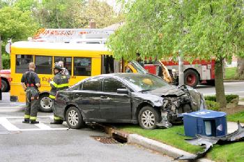 週二上午8時10分左右,一輛黃色校車在皇后區新鮮草原167街夾73大道處撞上一輛深色私家轎車。警方說,事故中校車駛離了道路撞上了路邊的燈柱,轎車也被撞在人行道上。