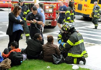 救護車醫護人員當場對受傷的11人進行了包紮。傷者包括校車司機,一名護士和一些學生。很明顯,所有學生都是青少年。 兩名傷勢嚴重但無性命之憂的傷者被送往長島猶太醫療中心救治,其他幾名僅受輕傷的傷者被送往皇后區醫院中心治療。目前,尚無人被指控。