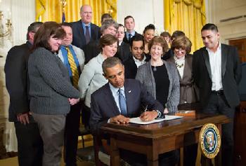 • 總統奧巴馬簽署加班工資新法令。(圖:聯邦勞工部)
