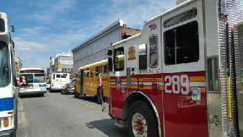 (紐約.羊展恬19日報導)法拉盛凱辛納大道昨日下午發生一起中餐館失火事故,事發之後當地消防站紛紛派出消防車前往救援。其中一輛消防車據報後前往事故現場途中,在法拉盛市中心的羅斯福大道近王子街路口自西往東方向行駛時卻因羅斯福大道上雙排停靠的市區巴士兩邊堵車,將兩方車道擠得完全沒有空隙可鑽,讓這輛消防車堵在街口動彈不得。