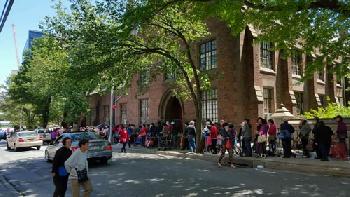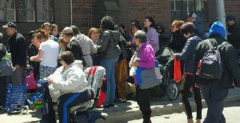 (紐約.羊展恬19日報導)凡是昨日中午經過法拉盛聖佐治教堂的民眾,都沒有不被長長的人龍所吸引,這也是法拉盛市中心少見的人潮踴擠現象,長長的人龍自法拉盛緬街教堂側門入口一直沿伸到王子街,其中大部份排隊的民眾卻以華裔為多。