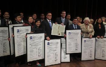 來自亞裔社區各界代表包括州參議員史塔文斯基、州眾議員金兌錫、伯朗斯汀、李羅莎、市議員顧雅明等民選官員及社區僑領甘台寧、任柏年等人都獲得主辦單位感謝獎牌,並希望社區各族裔相互交流合作並能和諧相處。