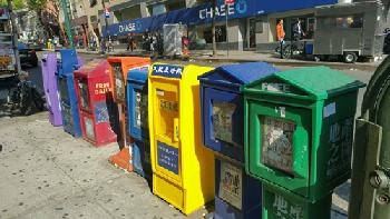 (紐約.羊展恬21日報導)為美化社區減少髒亂,由大法拉盛西商會與附近商家及商會成員協調下,日前曾在法拉盛王子街與37大道交口處的三角島,放置了3個新的垃圾筒,卻在兩天後遭清潔局威脅將發出罰單下撤離。
