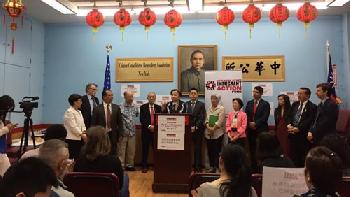 數十名來自華埠、布碌崙日落公園及皇后區的社區領袖,在移民行動基金會(Immigrant Action Fund)的動員下,到華埠支持維樂貴絲連任國會眾議員。