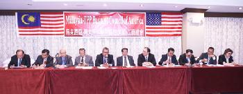 馬來西亞——跨太平洋夥伴協定(TPP)美國工商總商會籌委會主席邦君雄(中)等人昨日宣佈成立,與眾多馬來西亞駐華府及紐約代表進行熱烈討論。(圖:羊展恬攝)