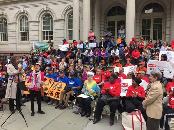 (紐約.留天佑25日報導)市議會老人事務委員會主席陳倩雯,昨日聯同多個老人福利團體在市府前集會(圖),要求市府向老人局增撥資源,改善安老服務及縮短老人公寓輪候時間。團體代表指,政府應在預算案中,對老人福利提供公平的份額,並透過老人局,增撥3450萬元,提升紐市的安老服務。