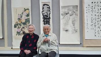 (紐約.羊展恬3日報導)紐約華人社區知名百歲人瑞現年103歲的書法家丁兆麟及99歲夫人丁紀鳳,將在本月4日起一連兩天,在紐約華僑文教中心舉行「雙百歲書畫聯展」,日前在文教中心舉行記者會,由丁兆麟弟子紐約華夏書法會會長孫載民等眾多弟子日前齊聚一堂,祝賀兩人能在百歲時一起展出作品。