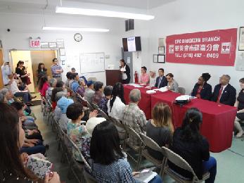 (紐約.留天佑7日報導)布碌崙華社近年人口猛增,不少移民社區的民眾由於不瞭解去哪裡可以獲得正規的法律服務而頻頻受騙。國會議員維樂貴絲昨聯同華策會布碌崙分會舉行移民資源日(圖),為民眾提供免費的移民法律服務。