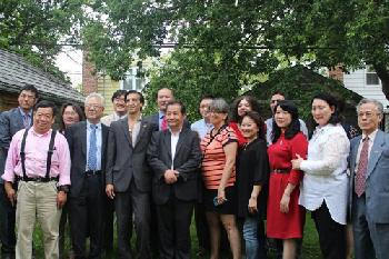 (紐約8日訊)法拉盛社區僑領杜彼得(前排右六)日前獲得民主黨皇后區黨部的徵召出馬競選紐約州第25州眾議員選區的黨代表,杜彼得昨日在眾多社區僑領與黨員的陪同下,正式宣佈開始收集選民連署簽名活動,他將與民主黨籍州眾議員李羅莎(Nily Rozic)與市議員藍斯門(Rory Lancman)聯名進行該選區(包括新鮮草原、貝賽、南法拉盛等地區)的連署簽名。