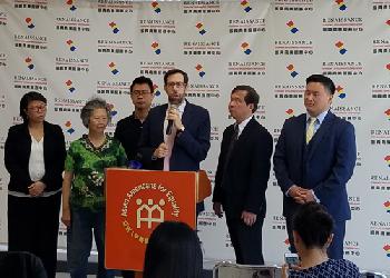 在新聞發佈會上(圖),金兌錫回憶起自己小時候父親開的小商業,因無法貸款,只能聯合多個商家形成借貸圈,利息高得驚人,且沒有法律保障,而移民社區裡,因為新移民信用紀錄短、啟動資金少,抗風險能力低,這樣的借貸圈比比皆是。