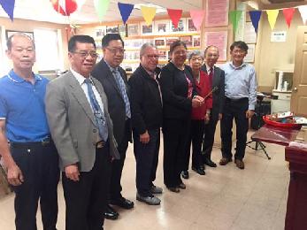 紐約余風采堂元老余景新,美東總長余宏基,主席余錦韶、余棟榮等,在會所迎接到訪的宗妹余淑婷。