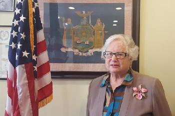 (紐約.羊展恬24日報導)紐約州參議員史塔文斯基(圖,羊展恬攝)23日舉行年度報告記者會,就此次任期州議會通過的法案進行詳細解說,其中包括州議會通過紐約州立及市立大學學費不漲價與州市提升最低工資,通過帶薪家庭病假等法案,讓許多低收入家庭學生獲得撥款資助等,希望在教育及經濟方面幫助更多家庭。但她表示,與眾多新移民學生有關的「夢想法案」卻未能在此屆會期的議會中提案,這是令人較為失望的結果。