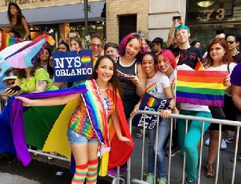 (紐約.留天佑27日報導)為慶祝每年6月的「同志自豪月」,紐市昨日舉行第46屆遊行。有與會者說,奧蘭多槍擊案令他們更願意站出來,表達對生命的熱愛與多元價值的支持。遊行人數創新高,保安也是歷屆以來最嚴密。六色「彩虹旗」飄揚在同志遊行隊伍中,曼哈頓第5大道儼然形成一個彩色的派對。主辦單位表示,今年的參加人數超過3萬人,花車也有破紀錄的80輛。