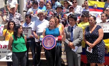 (紐約.留天佑28日報導)市議會移民事務委員會昨日召開會議,促請聯邦政府不要停止審批逾萬份敘利亞及厄瓜多爾難民來美的申請。市政廳外有近百名移民團體代表聲援(圖),認為拒絕難民入境,不符合美國價值。