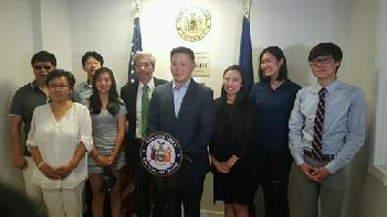 州眾議員金兌錫(Ron Kim)昨日與社團領袖陳家齡及多位受害家長、學生代表舉行記者會,對史樹德義舉表示感謝,並特別感謝當初在辦公室受理華人家長投訴的前幕僚長牛毓琳。