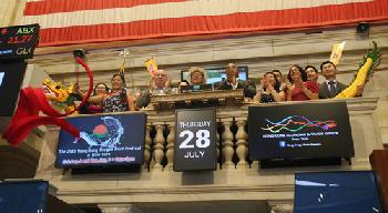 (紐約.留天佑29日報導)第26屆紐約香港龍舟節活動將於8月6日和7日在法拉盛草原可樂娜公園(Flushing Meadows Corona Park)舉行,為了宣傳活動,香港駐紐約經濟貿易辦事處及龍舟節組委會昨日下午4時,在紐約證券交易所主持股票收市敲鐘儀式(圖),鼓勵本地民眾屆時到場欣賞或組隊參加,共襄盛舉。