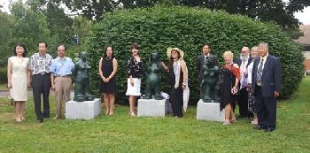 (紐約.羊展恬29日報導)紐約市首家以華人藝術家名字冠名的公共雕塑園,紐約市立大學皇后社區學院(QCC)美術館「張溫帙雕塑園」昨日舉行慶祝成立一週年慶典。包括州參議員史塔文斯基代表、皇后社區學院院長Diane B. Call、美術館館長Faustino Quintanilla、藝評家Ronald Kuchta、皇后畫院院長劉比華、中美文化藝術促進會會長王碚、華人家長會會長朱寶玲、企業家陳秋貴、林缉光等紐約文化、藝術、僑學界代表紛紛到場祝賀。張溫帙昨日也為她在該園捐贈的三件主題為「女人世界」的銅鑄當代雕塑作品舉行揭幕式。