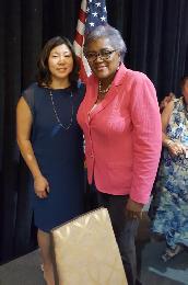 美東地區首位亞裔國會眾議員孟昭文(左),日前在費城參加民主黨全國代表大會,並被選為民主黨全國委員會副主席,為亞裔在美參政史上創造新的紀元。圖右為民主黨全國委員會代主席Donna Brazile。(圖:孟昭文辦公室提供)