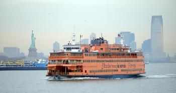 目前連接史泰登島至曼哈頓的渡輪(圖),定點來往下城白府(Whitehall)至聖佐治(St. George)。來自史泰登島區公所的消息指,交通局將考慮開展史島聖佐治碼頭至華爾街,甚至34街碼頭的航線,減輕島上通勤客之苦。
