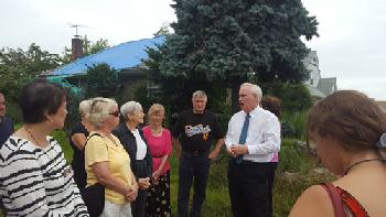 法拉盛163街一家「殭屍屋」年久失修影響環境安全,州參議員艾維拉(右二)昨日與居民代表同聲要求市府及貸款公司出面改善。(圖:羊展恬攝)