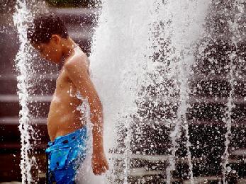 (紐約.留天佑16日報導)「熱浪」來襲下,紐約市過去的週末,氣溫達華氏近百度,是今年入夏以來最高紀錄。氣象部門昨日連續第5天,向大都會地區發出「酷熱天氣警告」,並提醒本週首三天,濕度將會更大,民眾或要多挨幾天,才能夠鬆一口氣。